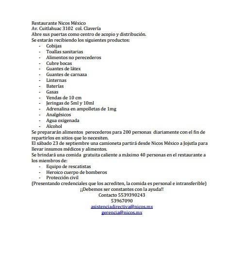 Este restaurante funge como centro de acopio para Morelos, checa lo que solicitan.
