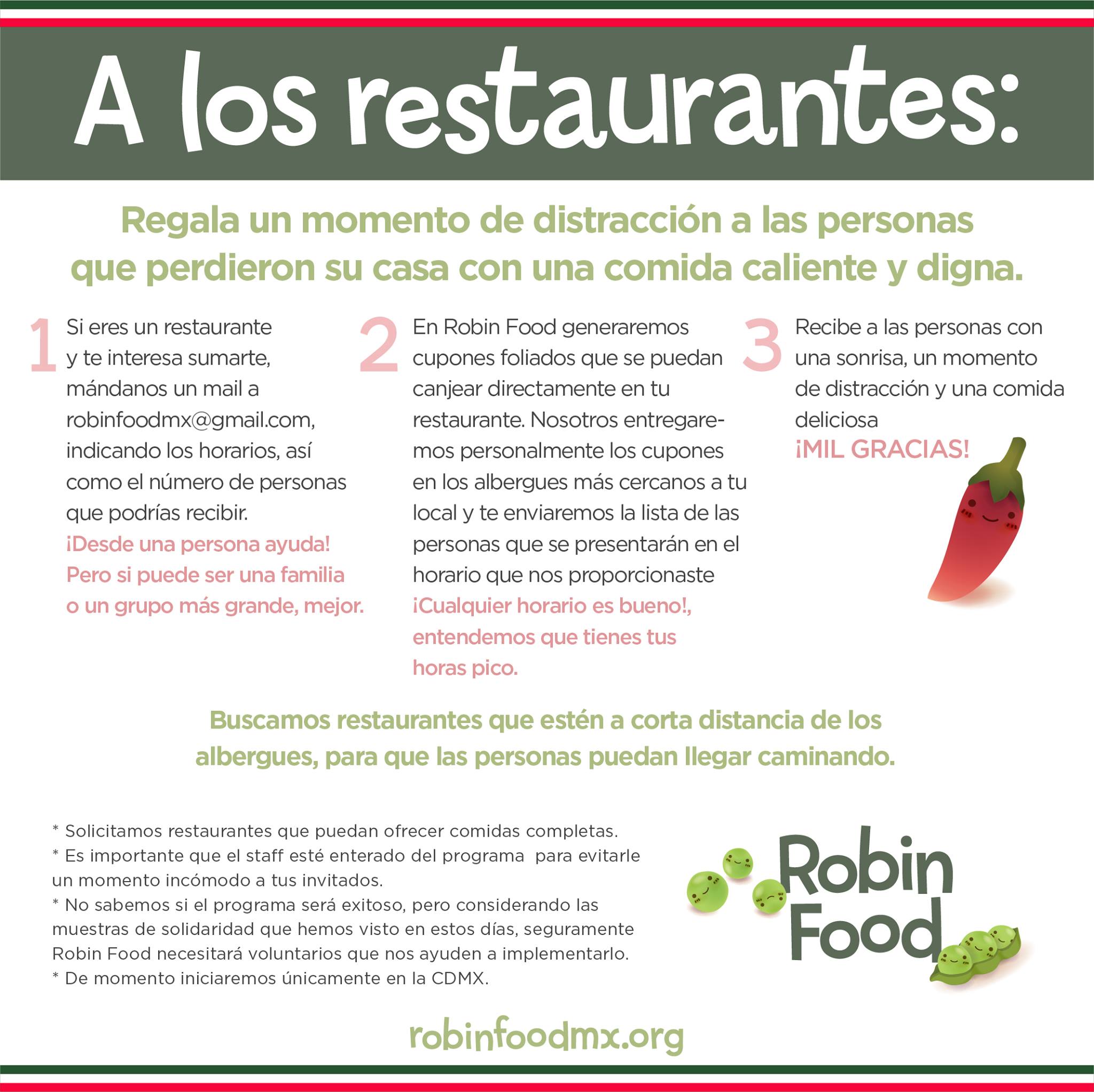 Esta iniciativa busca que si eres restaurante puedas ayudar a los que perdieron su casa y que estén más cercanos a ti con una comida caliente.