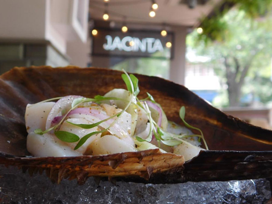 En mi más reciente visita comí tanto el pozole verde estilo Guerrero (con un chorrito de mezcal), así como su versión de la tostada de pata de res, que tiene mejillones ahumados, emulsión de jalapeño, escabeche de champiñones y coliflor. Si quieres aventurarte a probar otras especialidades, la hamburguesa Alipús mezcla tasajo, sirloin y un toque de chorizo, chapulines y mayonesa de hoja santa para un bocado disfrutable. Se acompaña con papas y camotes con cátsup con chile pasilla.