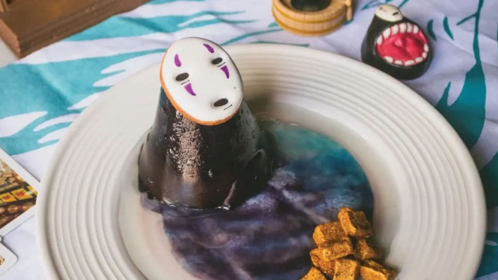 Experiencia: Postres “Totoro” (mousse de lychee), “Calcifer” (bizcocho flameado) y “Hollín” (trufas con algodón de azúcar); rolls y chow mein inspirados en Ghibli; murales y salón de nubes 3D.