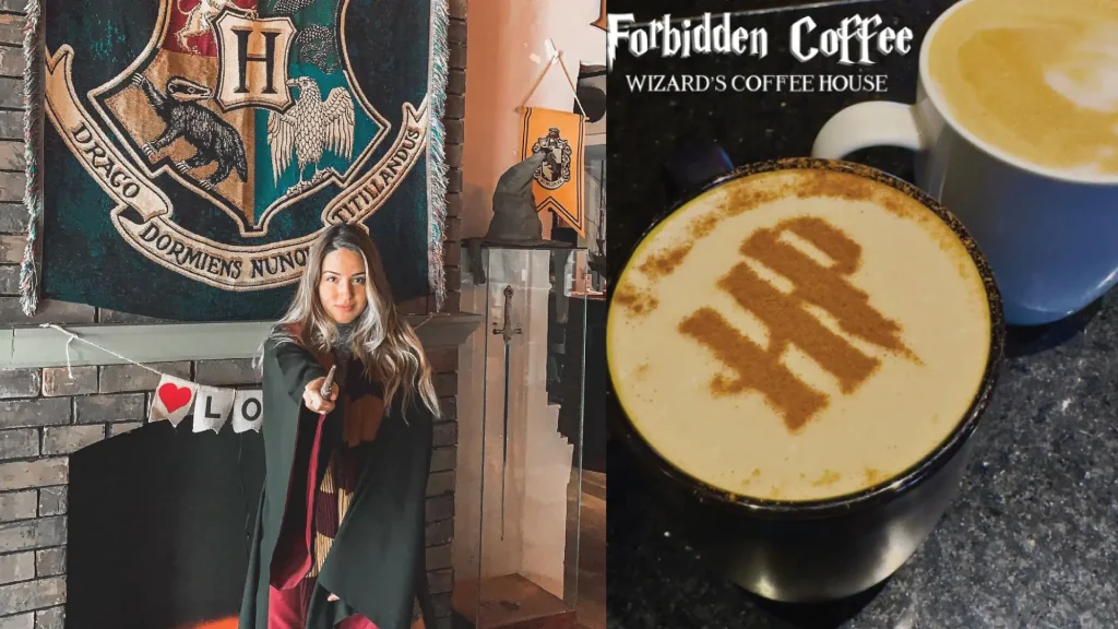 Inspirado en el mundo mágico de Harry Potter, este café es el destino ideal para los fans. Sus rincones están llenos de detalles que recuerdan a la saga, con un ambiente de misterio y magia. El menú incluye bebidas temáticas como la “Poción Jugosa” y el “Frappe de Renacuajos de Chocolate”, así como paninis, waffles y pasteles.