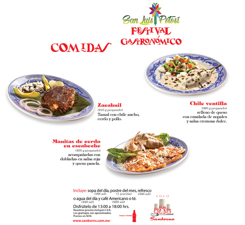 El festival dedicado a esta entidad se ha realizado desde el 2013 con gran aceptación. Este 2017, la presencia de San Luis Potosí se llevará a cabo en los 169 restaurantes Sanborns y 26 Sanborns Café en toda la república.