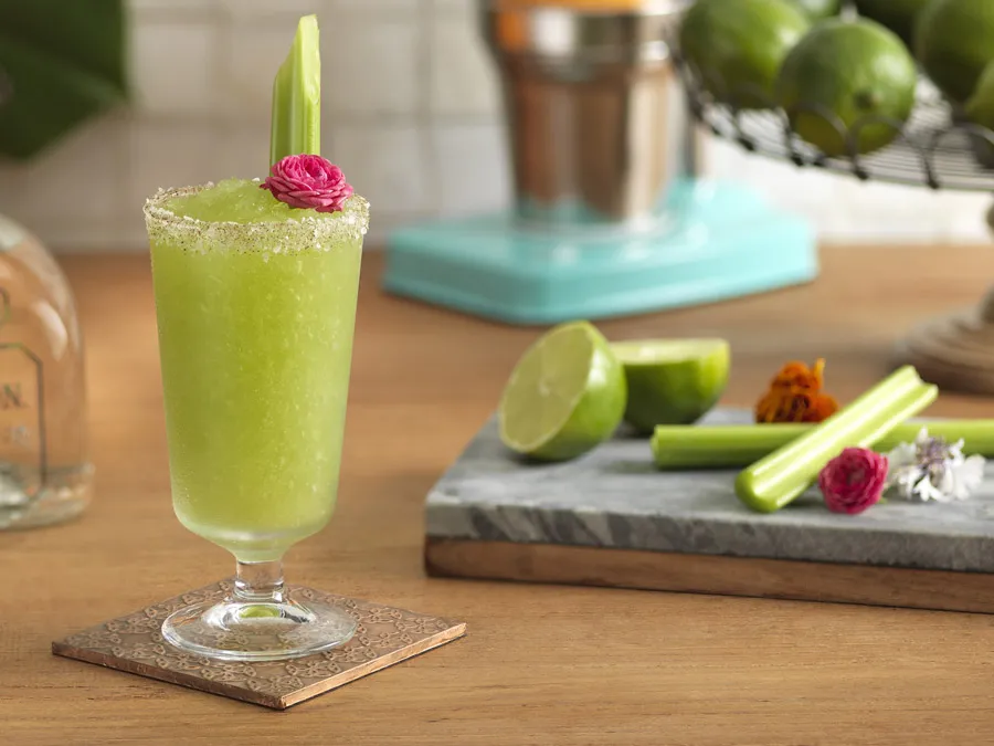 - Decora con un trozo de apio y una flor comestible. Bébelo “antes de una bien merecida siesta”, sugiere su creador.