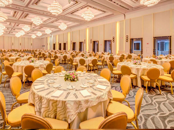 Su salón más grande, el Theatre Style, puede albergar a un total de 1200 invitados en un espacio lleno de lujos. Además, el hotel te brinda distintos servicios que amenizarán tu boda, como su banquete que promete deleitar el paladar de los más exigentes.
