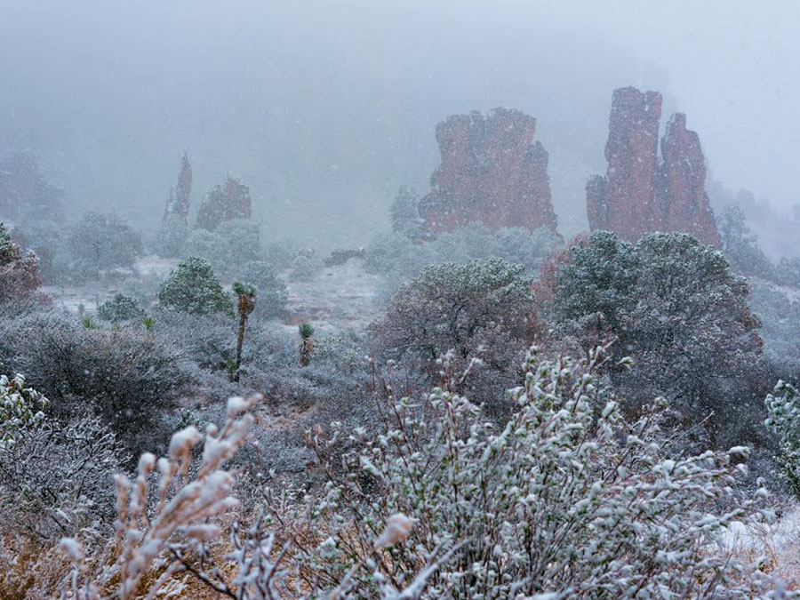 Las nevadas se deben a que este poblado se encuentra a 2,300 metros sobre el nivel del mar, justo en la Sierra Madre Occidental. En esta localidad podrás alojarte en cabañas que te acercarán a la aventura de conocer la Sierra de Órganos.