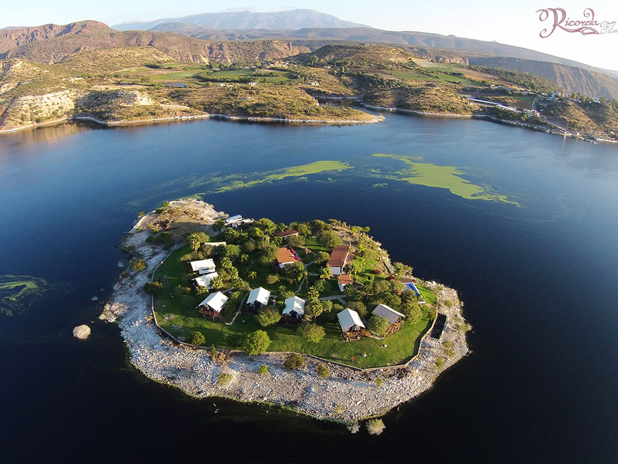 Se encuentra en el centro de la presa hidroeléctrica Zimapán en el Pueblo Mágico Cadereyta de Montes, Querétaro. Las cabañas son ecológicas y es necesario hacer una reservación. Además, solo es posible llegar en lancha así que ve con poco equipaje y ropa cómoda.
