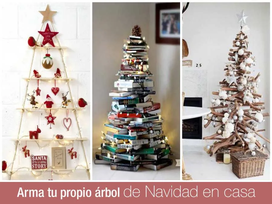 Si tienes libros, velos colocando en forma de torre hasta formar el árbol. Adorna con luces y quizá con un moño en la punta.