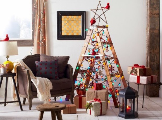 Reutiliza una escalera, hilo de nylon y esferas para recrear esta singular idea y celebrar una Navidad sustentable.