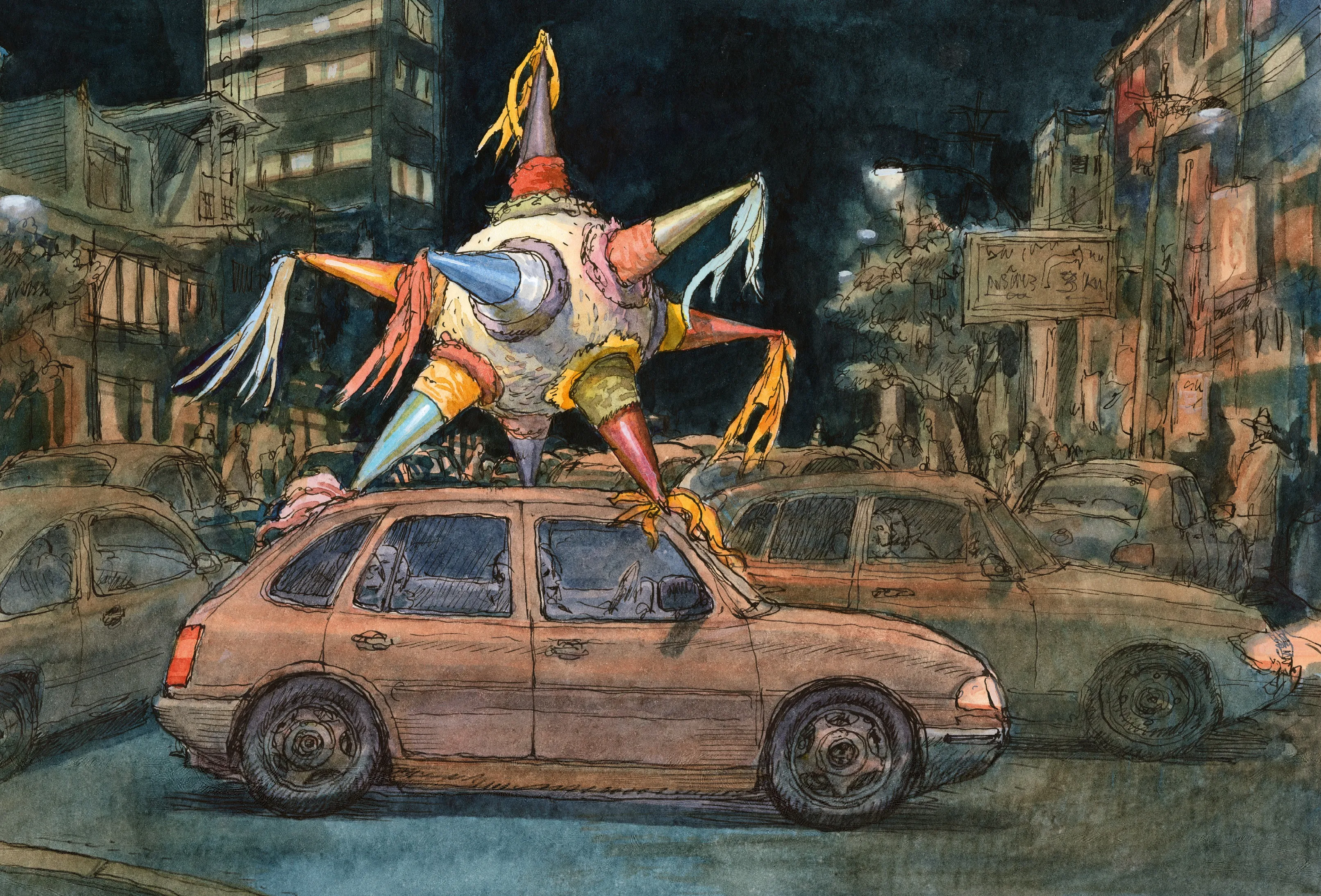 “Primero fue el tamaño de la ciudad –explica–. Aterricé de noche y el hecho de pasar 20 minutos sobrevolando la ciudad es algo muy impresionante, porque no existe una vista así en otro lado. Otra cosa especial es que la Ciudad de México está entre montañas. También la luz que le confiere a la Ciudad le da un carácter especial, así como la asociación de colores que se da a partir de esta. Es muy interesante para un dibujante”.