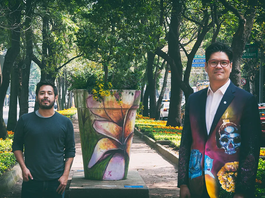 Él fue quien se encargó de la curaduría de cada maceta: de elegir las más de 150 especies de plantas que van dentro de cada una (la mayoría, cultivadas en Xochimilco), entre rastreras, cubre suelos, colgantes, trepadoras, cepos y árboles. Antes de colocarlas, se aseguró de que se integraran al paisaje, siempre respetando el elemento dominante que fue la obra de cada artista urbano.