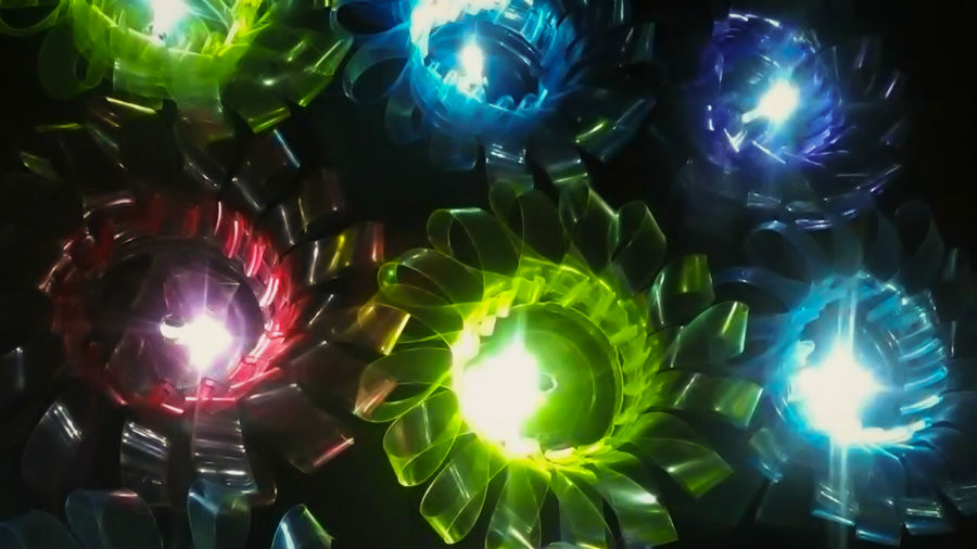 Aquí el artista Orfeo Quagliata creó una pieza con apariencia de gemas. La luz en cada pieza produce un efecto caleidoscópico en el interior, a la vez que ilumina el espacio exterior.