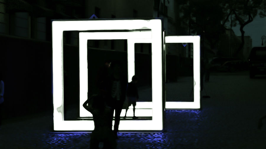 Retomando las señales de alerta que encontramos en estaciones de tren u otros espacios públicos, ILUMINET hizo esta obra en la explanada de la Biblioteca Lerdo de Tejada, donde puedes detenerte para enmarcar con luz una selfie, pintarte con los colores de la luz emitida, o cruzar por un portal que transporta a un espacio para interactuar y relacionarte de otra forma con el entorno.