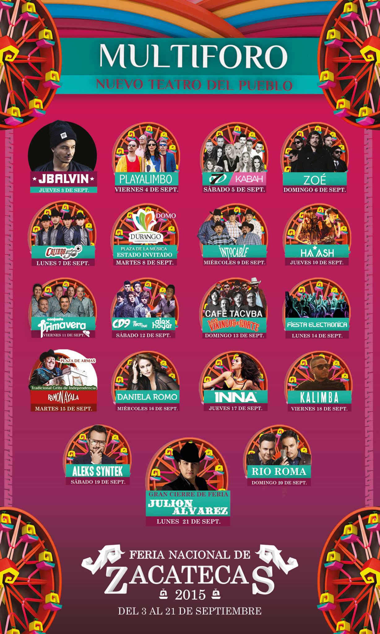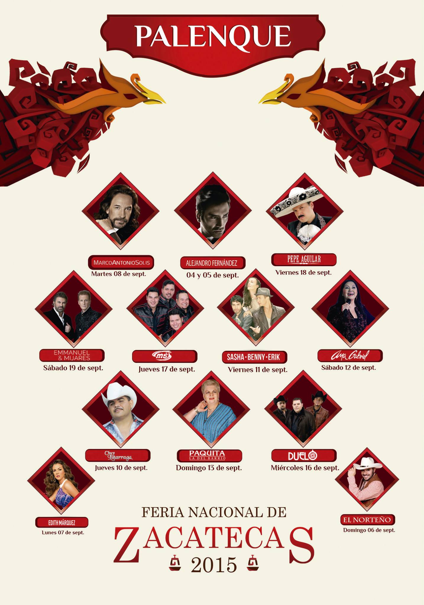 Cartelera de espectáculos de la Feria Nacional de Zacatecas