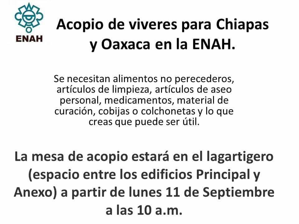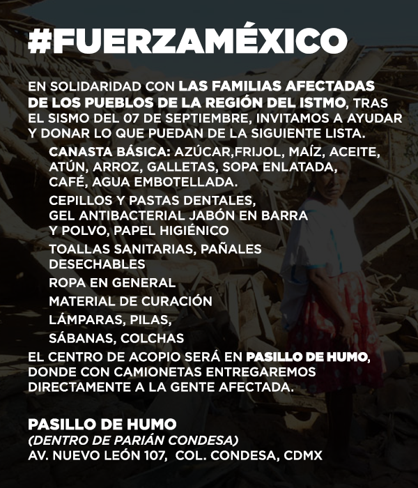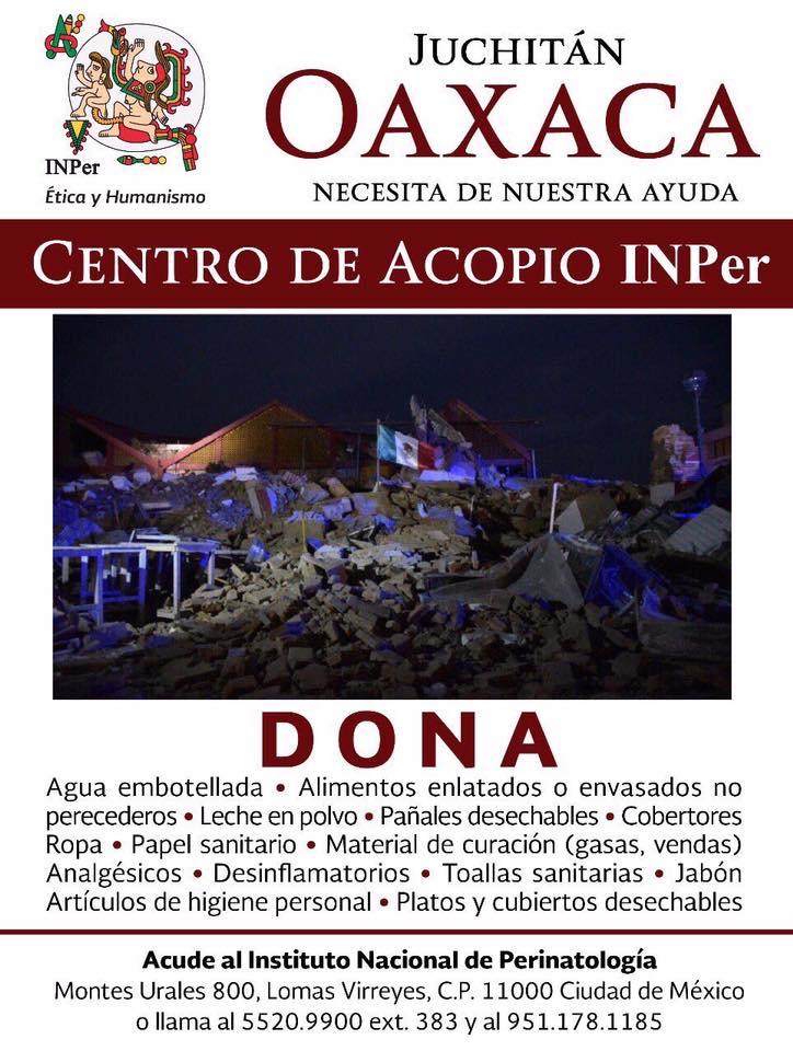 Ponemos a disposición nuestras instalaciones como centro de acopio para nuestros hermanos juchitecos. Todo tipo de ayuda es bienvenida. pic.twitter.com/B4GX7lmmMS