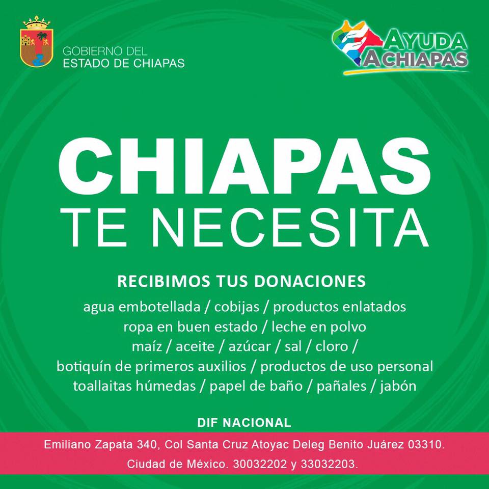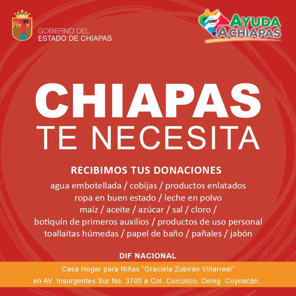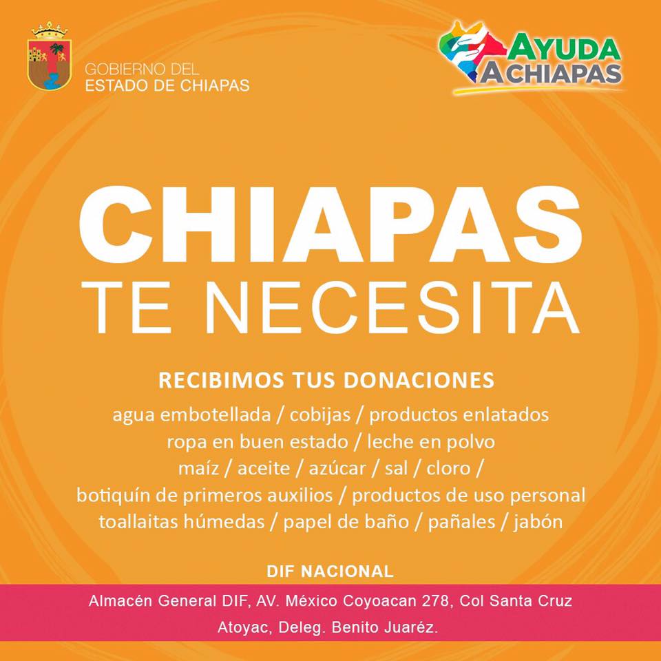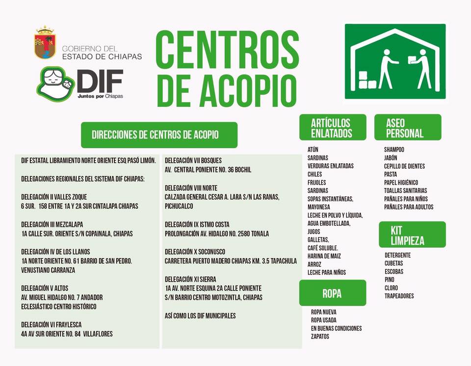 En Chiapas, estas son las direcciones donde puedes ayudar: