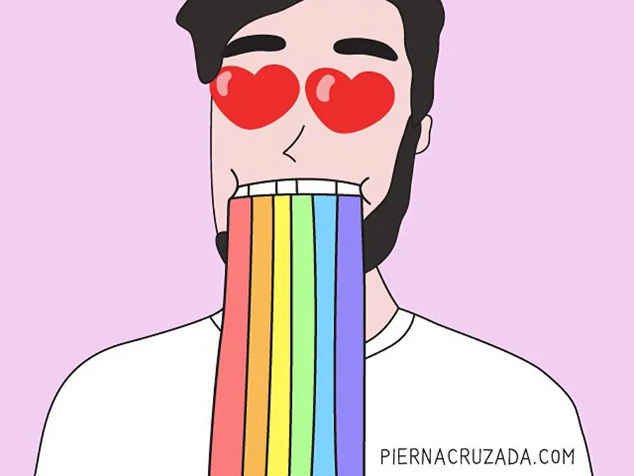 Por eso, ahora lo que está haciendo a través de sus cómics LGBT es retomar el tema. “Procuro hablar de eso que los gays tenemos, mientras crecemos —explica—. Creo que cargamos un recibo de odio… de enojo incluso con nosotros mismos”. Y, como buen humorista, lo hace a partir de su herramienta principal.