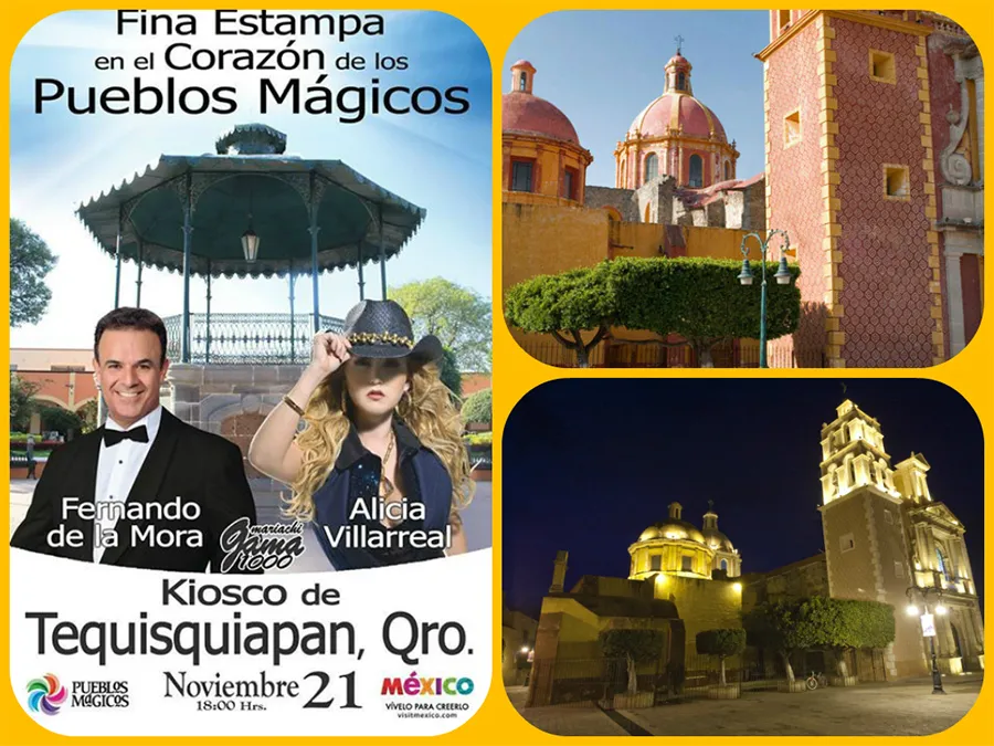 El Kiosko de Tequisquiapan en Querétaro será el escenario ideal para la realización de este concierto, en el cual los asistentes podrán disfrutar de las voces del tenor mexicano Fernando de la Mora y la cantante Alicia Villarreal, acompañados del Mariachi Gama 1000.