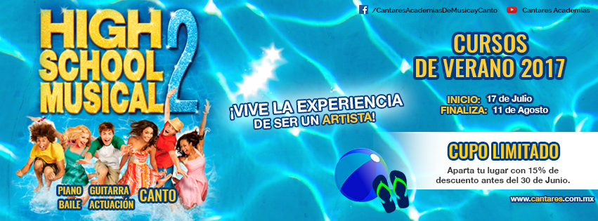 En la academia Cantares los niños aprenderán canto, baile, actuación, piano y guitarra en cuatro semanas de curso intensivo de formación musical. Este 2017 se montará y presentará en vivo al final del curso la comedia musical “High School musical 2” con los alumnos como artistas estelares.