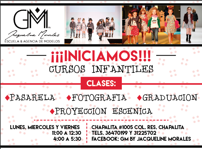 Los cursos infantiles que ofrece GM Escuela y Agencia de Modelos abarca la proyección en pasarela, fotografía, expresión escénica y un evento de graduación en donde los alumnos podrán demostrar lo aprendido sobre la plataforma.