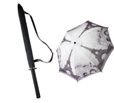 La carfebrería El Péndulo, cuenta con una pequeña pero interesante colección de paraguas. Uno que me llamó la atención fue el que semeja una tradicional espada de samurái, con mango de katana y botón para apertura automática. ¿Podríamos considerarla una poderosa arma para defenderse de la lluvia, no crees?