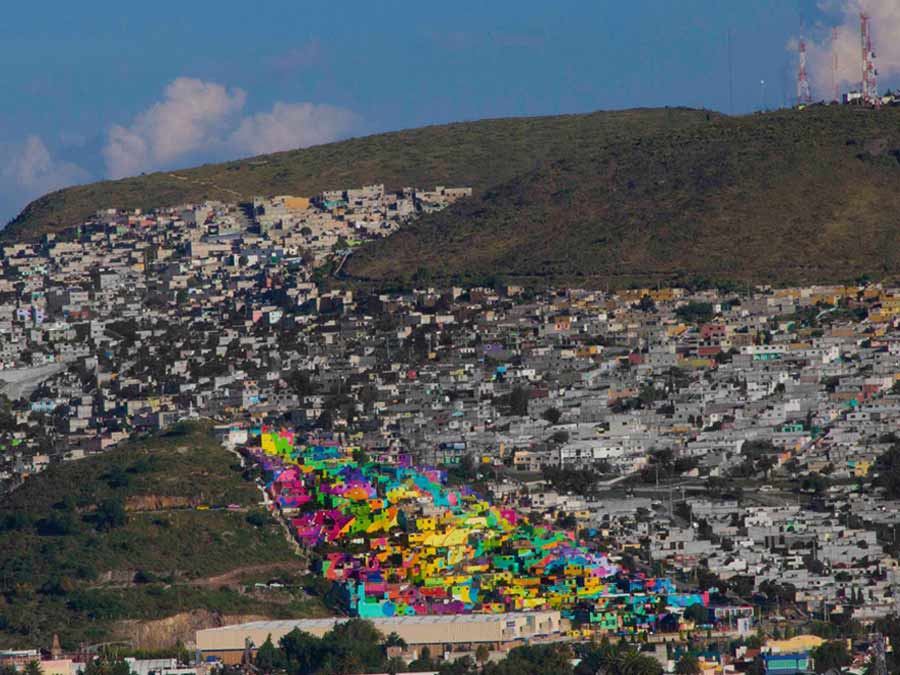 Este proyecto consistió en dar vida a un mural de 20 mil metros cuadrados en calles y exteriores de 209 casas de la colonia Palmitas como parte activa de la transformación para tener un entorno digno.