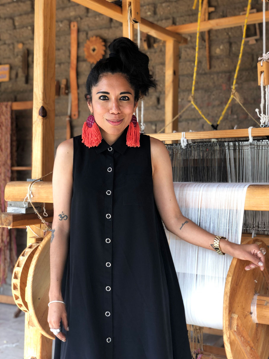 Todos los telares se componen de cuatro cuadros y cuatro pedales: cada uno es como un piano. Tiene piezas que se llaman cajín, jalón, cacho, cachetes, pícaro, tablita, tope, antepecho, postes, carretillas, palanca, estrella y el julio de hilo: todo esto es parte de lo que ellos como artesanos conocen y comparten con Vianney. Ella a su vez realiza patrones, analiza formas, ergonomía, peso y otras tantas variables. Al ver las piezas terminadas todo tiene sentido: el trabajo en equipo da buenos frutos.