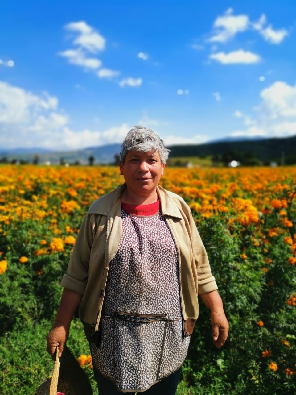 Emigdia Colín García, floricultora de San Francisco Putla en Tenango del Valle, comienza junto con su familia la siembra de alhelí desde principios de julio. “Nosotros no paramos de trabajar en el campo, porque la flor es la que no debe faltar en las ofrendas, por eso esperamos a los compradores del Estado de México y de otros estados para que adquieran las mejores flores del país”, dice.