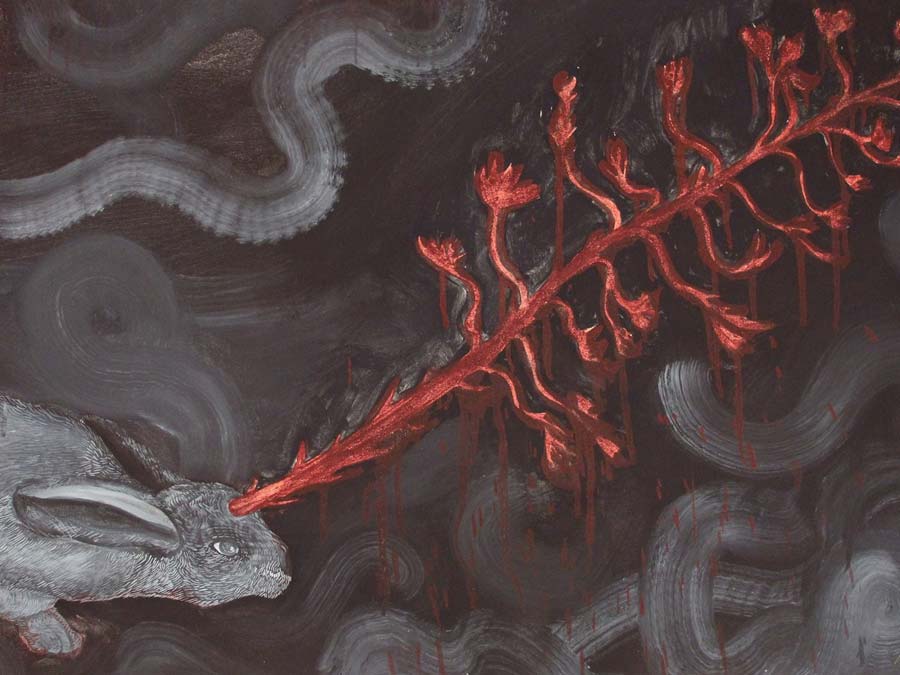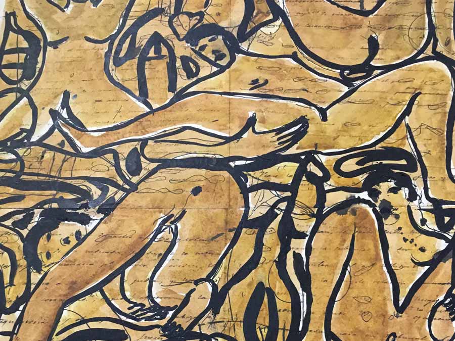 Un ejemplo de lo que puedes ver en estos días es el trabajo del joven artista José Ángel Santiago, quien utiliza pigmentos naturales como el añil y la grana cochinilla en tres de las piezas exhibidas.