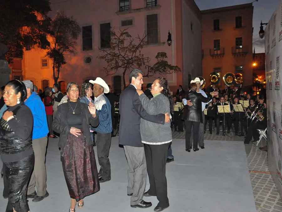 Un cadencioso ritmo invade cada miércoles la plaza Miguel Auza de la capital zacatecana, cuando cientos de pies se mueven al son de un tradicional baile de origen cubano, el danzón.