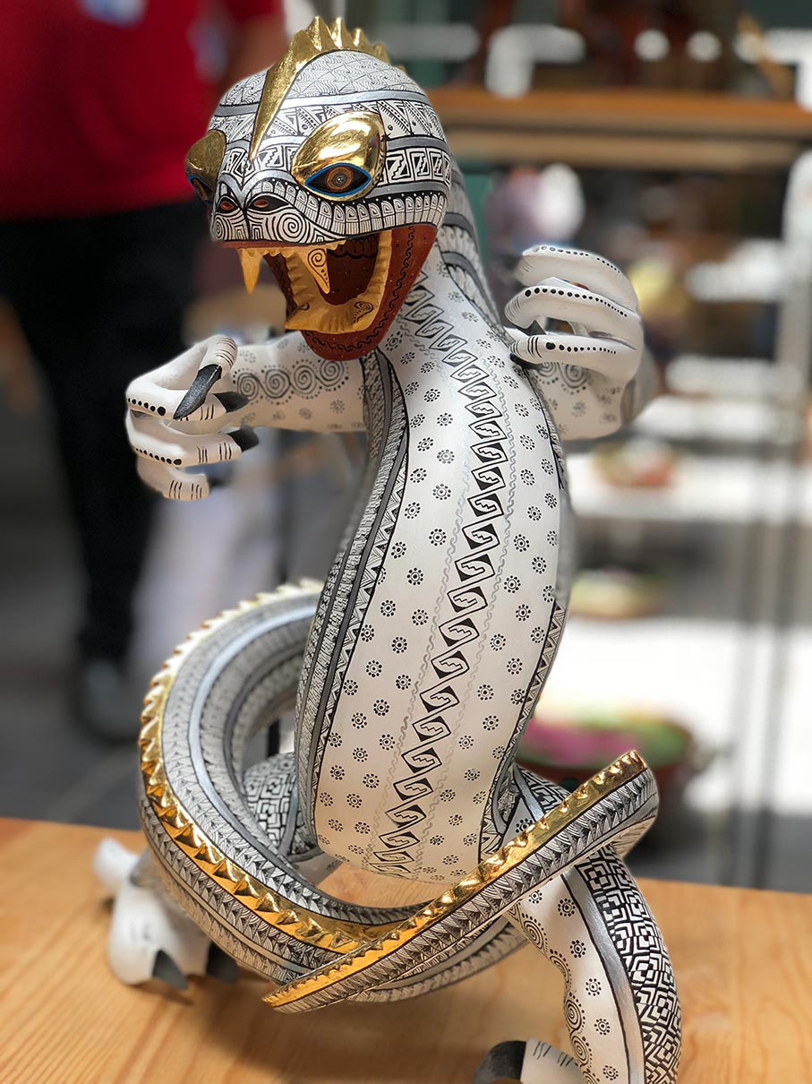 Si bien Pedro Linares, un cartonero de esta localidad en los Valles Centrales de Oaxaca, les dio el nombre de “alebrijes” (checa la historia que cuenta su nieto), con el tiempo estos seres oníricos se fueron elaborando con otras ideas y creatividad, como las de Jacobo Ángeles y María Mendoza, los visionarios de este espacio.