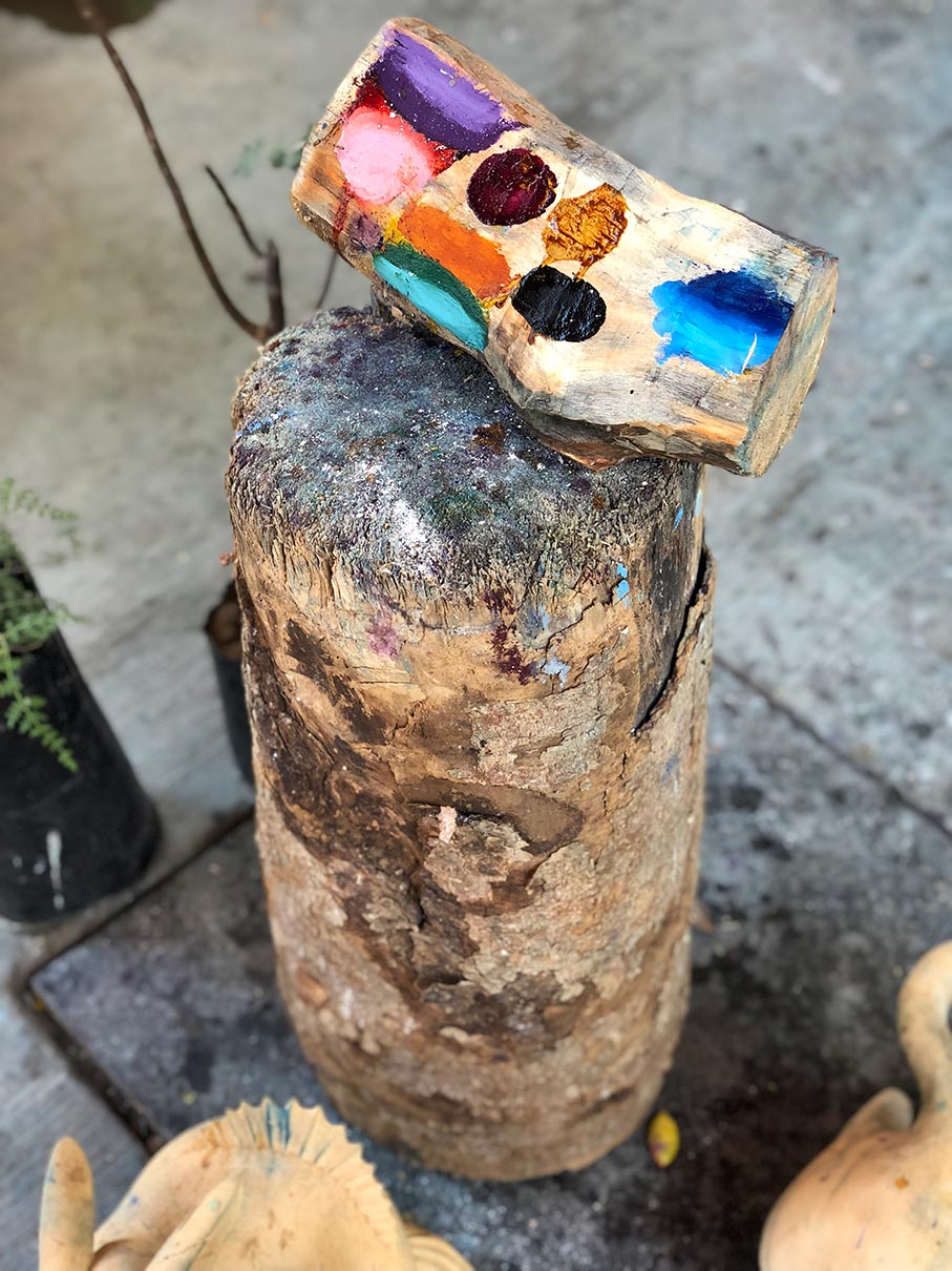 Seguramente has olido la resina de copal, esa que se quema en las iglesias; pues bien, al entrar al taller artesanal, el aroma es muy similar y hermoso. David explica que estos copales deben tener entre 25 a 35 años para poderse usar en estas piezas.