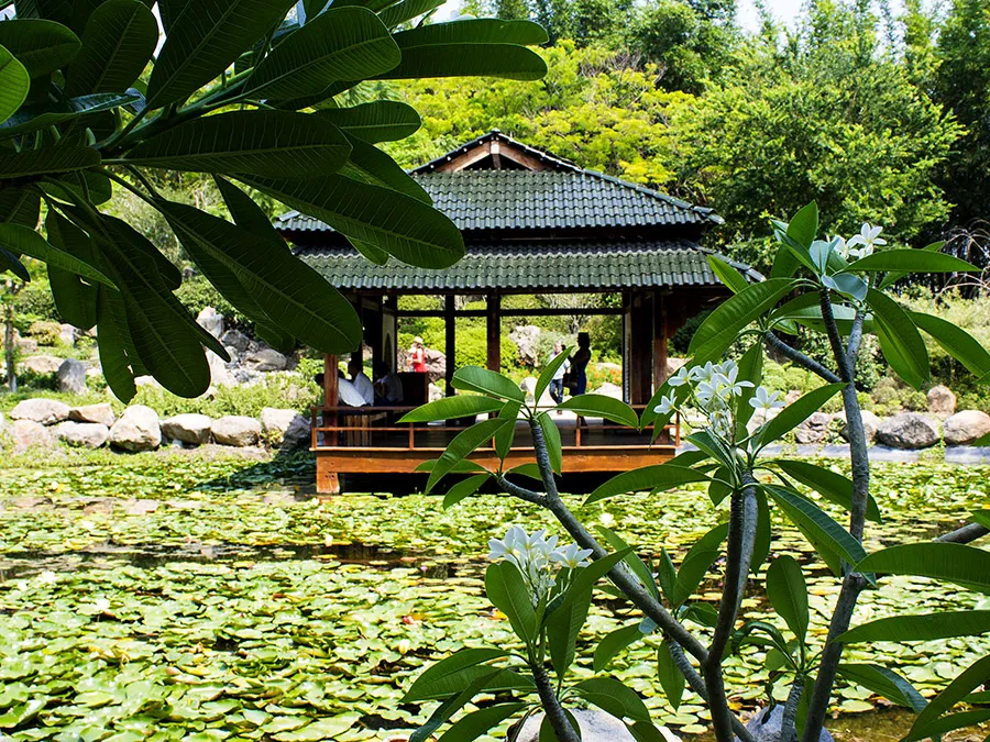 Está armonizado con plantas, rocas, árboles y caídas de agua, todo bajo una perfecta sintonía de elementos y simbolismos con significados profundos y milenarios. En este jardín te podrás deleitar con el paisaje de bambú, puentes y una casa de té propia de la cultura japonesa.