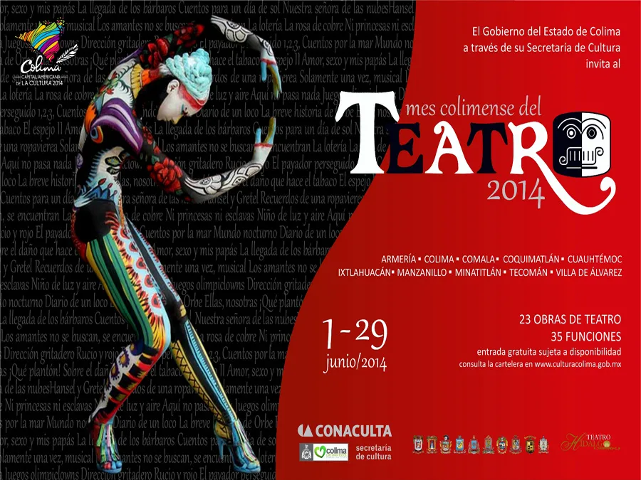 ¿Te gustas el teatro? En ese caso tenemos una muy buena noticia para ti, del 1 al 29 de junio en Colima se lleva a cabo el Mes Colimense del Teatro 2014. Disfruta de 23 obras teatrales y un total de 35 funciones. La sede principal es el Teatro Hidalgo, pero también podrás disfrutar este festejo en la carpa itinerante que la Secretaría de Cultura del estado ha implementado.