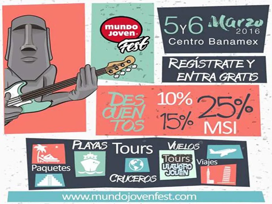 Agencias de viajes, aerolíneas nacionales e internacionales y escuelas en el extranjero estarán presentes en esta edición para ofrecerte las mejores ofertas en vuelos, hospedaje, estudios, voluntariado y artículos de viaje. ¡No faltes! Hay otra buena noticia, ya que le entrada es gratuita siempre y cuando te registres en la página mundojovenfest.com.