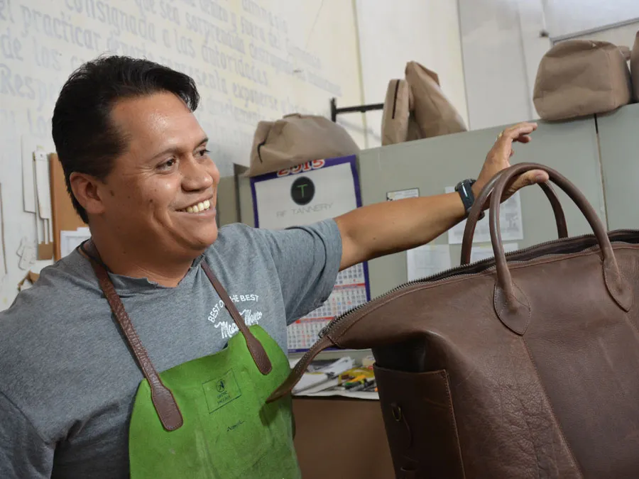 Abel lleva 14 años trabajando en la industria de la piel. Inició en el calzado, pero cuando tuvo la oportunidad, se cambió a la marroquinería. Ahora es patronista en una empresa dedicada a elaborar artículos con pieles en León, Guanajuato.