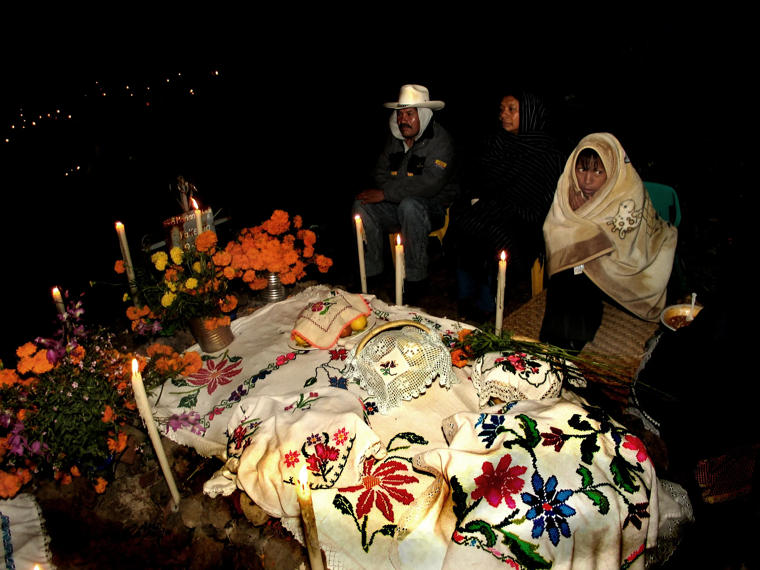 Los habitantes de Janitizio participan en un rito tradicional que es un deber sagrado, el cual honra por igual a vivos y muertos. Mujeres y niños de la isla llegan al panteón y se dirigen hacia las tumbas de sus antepasados bajo un silencio que contrasta con la luz de las velas, mientras colocan los alimentos predilectos de sus difuntos y su petate.