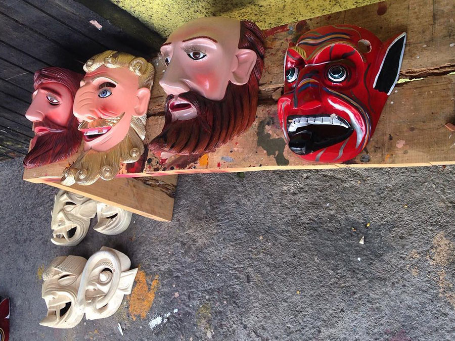 Los hombres por otro lado se dedican al trabajo duro (como ellos le llaman): a la elaboración de máscaras de madera como materia principal.