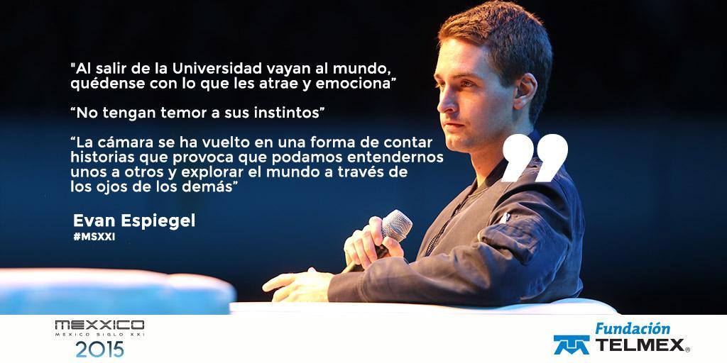 De todas las ponencias, la más breve y que habló de tecnología y las startups fue la del joven creador de la aplicación Snapchat, que en mi opinión, resume la forma en la cual se comunica toda una generación: imágenes, videos, textos, dibujos, personalización, intimidad, inmediatez y medios sociales (con todos los claroscuros que eso conlleva).