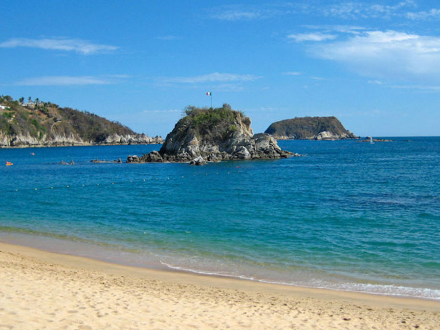 Este lugar, como Zipolite, también se encuentra en Oaxaca. Forma parte de las 36 pequeñas playas de Huatulco en la Bahía de Santa Cruz. Su arena es suave pero de color café intenso y a diferencia de otras playas, sus aguas poseen un destello verde que hace juego con su vegetación.