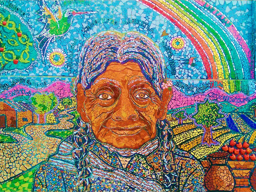 Más adelante, el rostro de una señora que entre sus arrugas y su mirada cansada nos relata el esfuerzo de las antiguas generaciones en favor de la prosperidad de su pueblo.