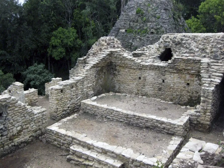 Sobresale la decoración de sus edificaciones, entre las que se encuentran dos edificios de más de 40 metros de altura con escalinatas que conducen a la parte superior, donde se rendía pleitesía a los dioses. Existen otras estructuras de menor tamaño, donde se practicaba el juego de pelota. En sus alrededores habitan especies como jaguares, tapires y pavos ocelados.