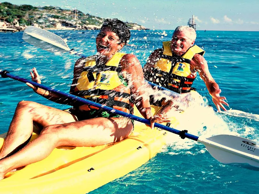 Podrás disfrutar de distintas actividades acuáticas, como el kayak y el snorkel; de aventura, como excursiones, tours en bicicleta, vuelo sobre las aguas turquesa en la tirolesa, o si lo prefieres, pasar un día de relajación en las hamacas o en el bar tropical.