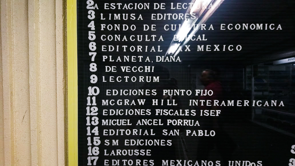 A lo largo del Pasaje hay pizarrones con el directorio completo que indica el nombre de cada editorial y el número del local en el que se encuentra. Si no la encuentras, las personas que trabajan en el pasaje te dan santo y seña para localizar el sello o material que buscas.