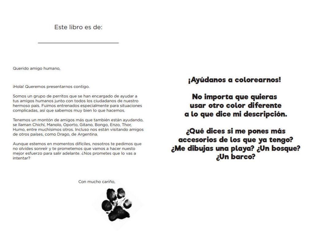 Después de darle su merecido corazoncito y RT a la publicación, busqué a la autora, Lucie Torres (o Pony en Twitter), para que me contara más sobre su libro Los héroes de cuatro patas, el cual, por cierto, puedes descargar gratuitamente. Fue así como Lucie me platicó que este material tiene dos fines: 1) que lo uses para desestresarte, 2) lo imprimas y repartas entre  los niños y las niñas que necesitan asimilar de la mejor forma todo lo ocurrido.