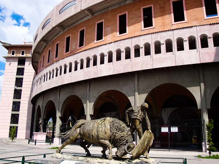 Su arquitectura es de ladrillo rojo y posee los elementos simbólicos y representativos de la tauromaquia. La mejor zona es la parte superior podrás apreciar las puestas de sol en el ruedo. Estatuas de toreros representativos del arte taurino: Alfonso Ramírez “Calesero”, Rafael Rodríguez “El Volcán de Aguascalientes”, y Fermín Espinoza “Armillita”.