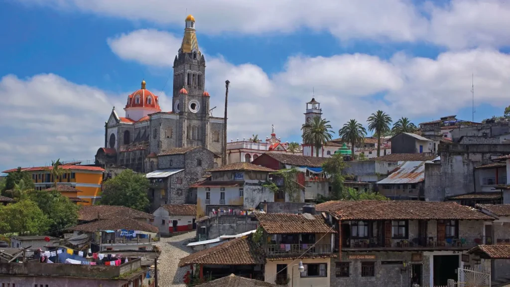 Si lo tuyo es la naturaleza exuberante y la arquitectura que cuenta historias, Zozocolco te va a robar el corazón. Escondido en la sierra del Totonacapan, este lugar se distingue por sus construcciones de piedra blanca labrada, una técnica que le da una luminosidad única bajo el sol veracruzano. Caminar por sus calles empedradas es un viaje sensorial; el olor a vainilla y café de altura impregna el aire húmedo de la montaña. Pero lo que realmente lo pone en el mapa de los Pueblos Mágicos que debes conocer este 2026 son sus pozas naturales. Las Poza del Diablo, con sus aguas cristalinas de color turquesa, son el antídoto perfecto contra el calor y el estrés. Además, si tienes la suerte de visitarlo en noviembre, presenciarás su famoso Festival Internacional de Globos de Papel de China, una tradición que pinta el cielo de colores y demuestra la maestría artesanal de sus habitantes. La iglesia de San Miguel Arcángel, construida en el siglo XVII, vigila el pueblo y ofrece una vista panorámica que te dejará sin aliento. Es un destino que combina la aventura del ecoturismo con la paz de un pueblo serrano.