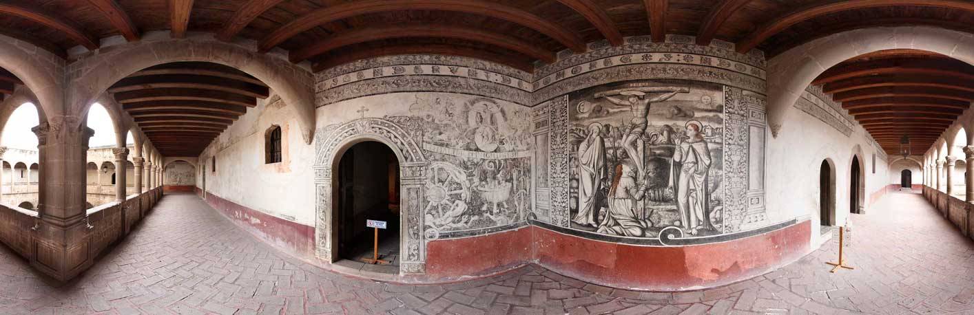 Podrás observar su biblioteca, las salas capitulares y celdas, así como retablos de estilo barroco. Su Templo y ex convento, caballerizas, huertos, caminos procesionales, cruz y barda atrial son algunos de los puntos que recorrerás sin salir de casa.
