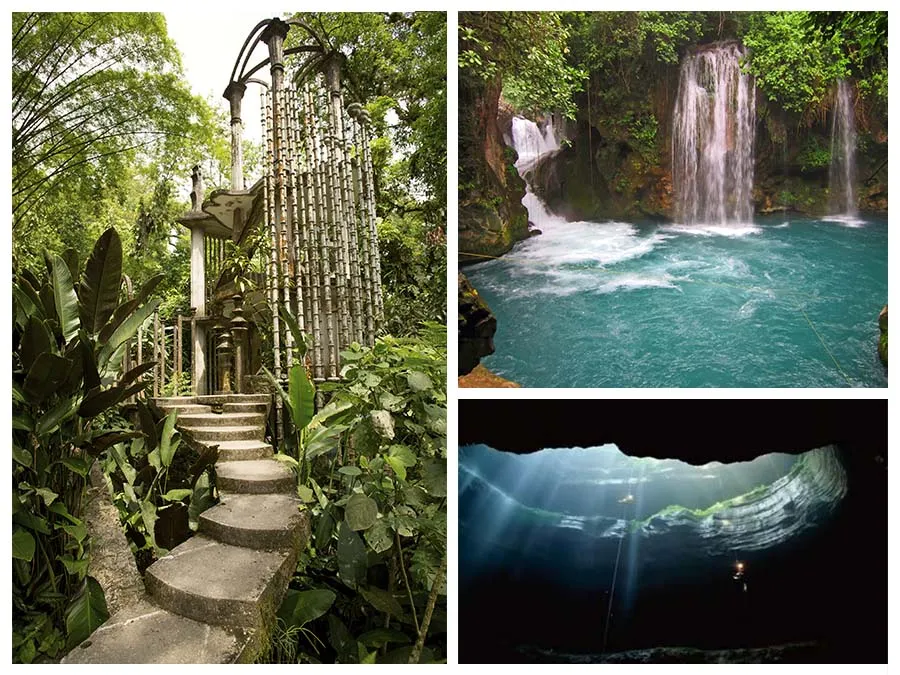 Más hacia la sierra se encuentra el municipio de Xilitla, dónde se ubica el Jardín Surrealista de Sir Edward James, lugar místico en donde este escultor y poeta construyó caprichosas esculturas basadas en símbolos mágicos que vinieron desde su mente febril a decorar un paradisíaco terreno.