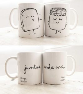 No es para nada necesario que tú la decores. Realmente las tazas para novios no son muy caras y hay lugares donde las pueden personalizar. Checa los ejemplos que te pongo y pide que te hagan algo similar.