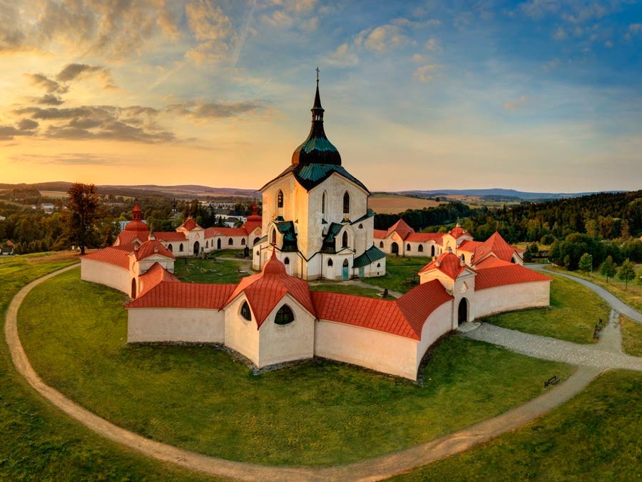 La Iglesia de San Juan Nepomuceno, ubicada en Zelená, es de las construcciones más originales de Europa y asombra con su belleza. Es obra del arquitecto Jan Blažej Santini Aichel y es otro más de los monumentos Patrimonio Mundial de la UNESCO de este país. Ahí diferentes fieles llegan en peregrinación a ver a San Juan Nepomuceno, un importante santo checo.
